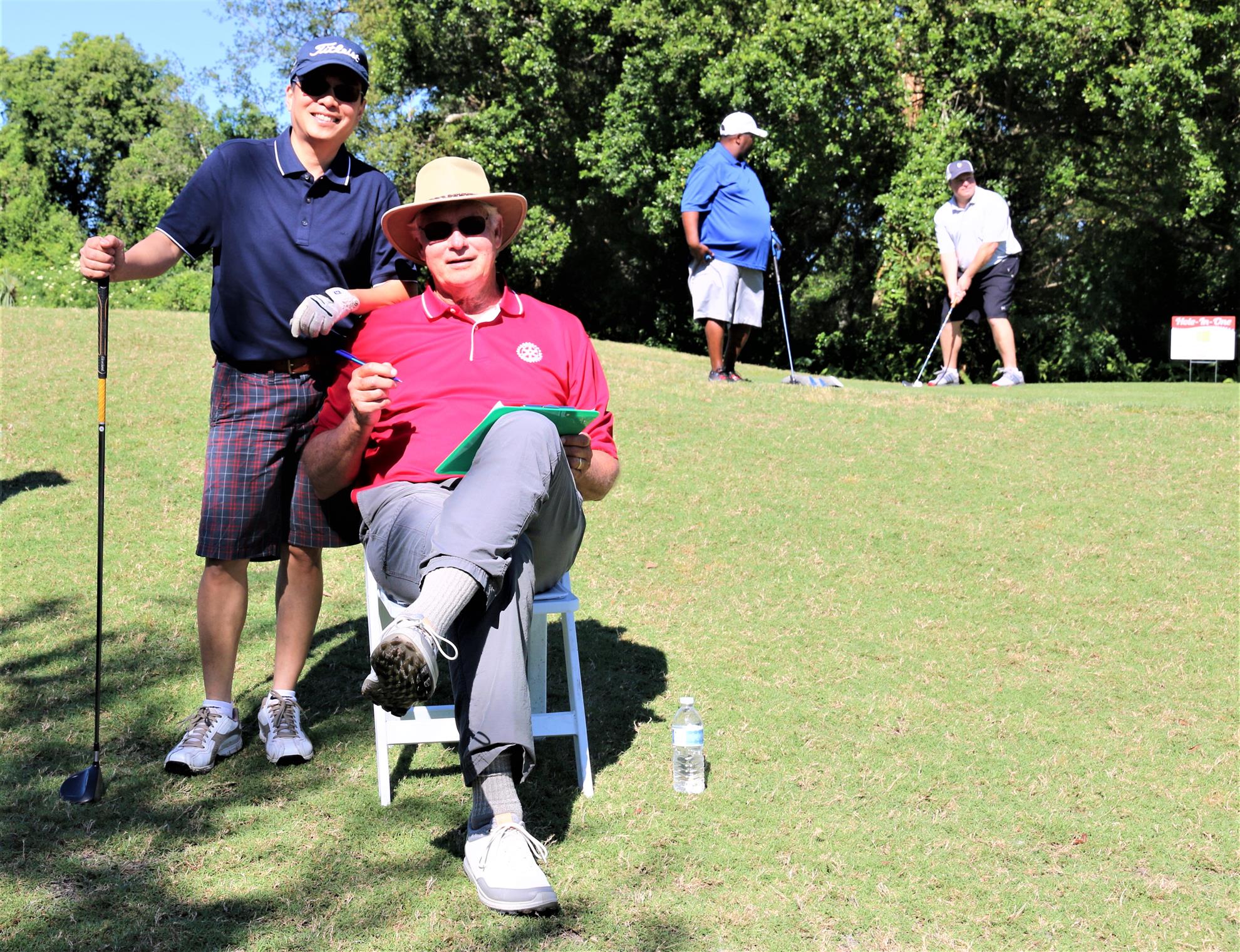 The Rotary Club of DeLand held its 25th Annual Charity Golf Classic at DeBary Golf and Country Club April 27, 2019. The 8:00 am Shotgun Start was preceded by a Fundraising Ball Drop--a parachutist glided over the Golf Course and released 300 golf balls. This tournament could not have been possible without the support of generous sponsors. AdventHealth was this year’s Major Sponsor. United Parachute Technologies, LLC was the Eagle Sponsor. Birdie Sponsors were Boulevard Tire Center; Mainstreet Community Bank; Anne H. Stevenson, CPA, PA; LandisGrahamFrench; Alliance Community; Gorman Company; Hollis House Woodworking and Design; Silloh Development; Total Comfort Heat and Air Conditioning, Inc.; and, Dale D. Batten, DMD PA. Par Sponsors were Astrid deParry, P.A.; Kaiser Buick/GMC Truck; James Moore, Certified Public Accountants and Consultants; Dreggors, Rigsby & Teal, P.A.; Elyse Phillips, CPA; Fleishel Financial Associates; Toy Train Local Collector; and Wine to Water.
